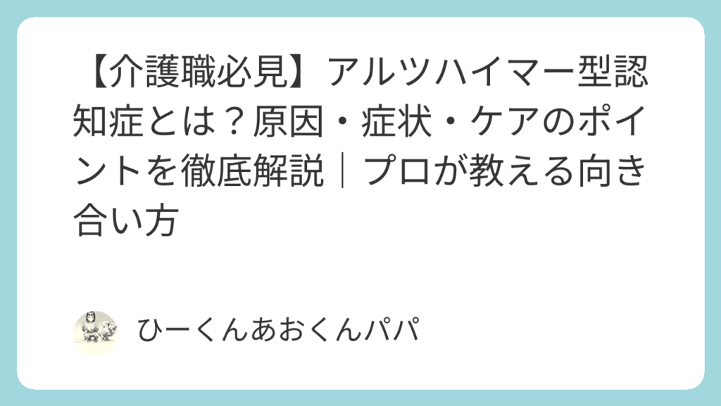アルツハイマー型認知症のケアは長期戦です。完璧を目指すのではなく、病気の特性を知ることで「これは病気のせいなんだ」と一歩引いて見ることが大切です。