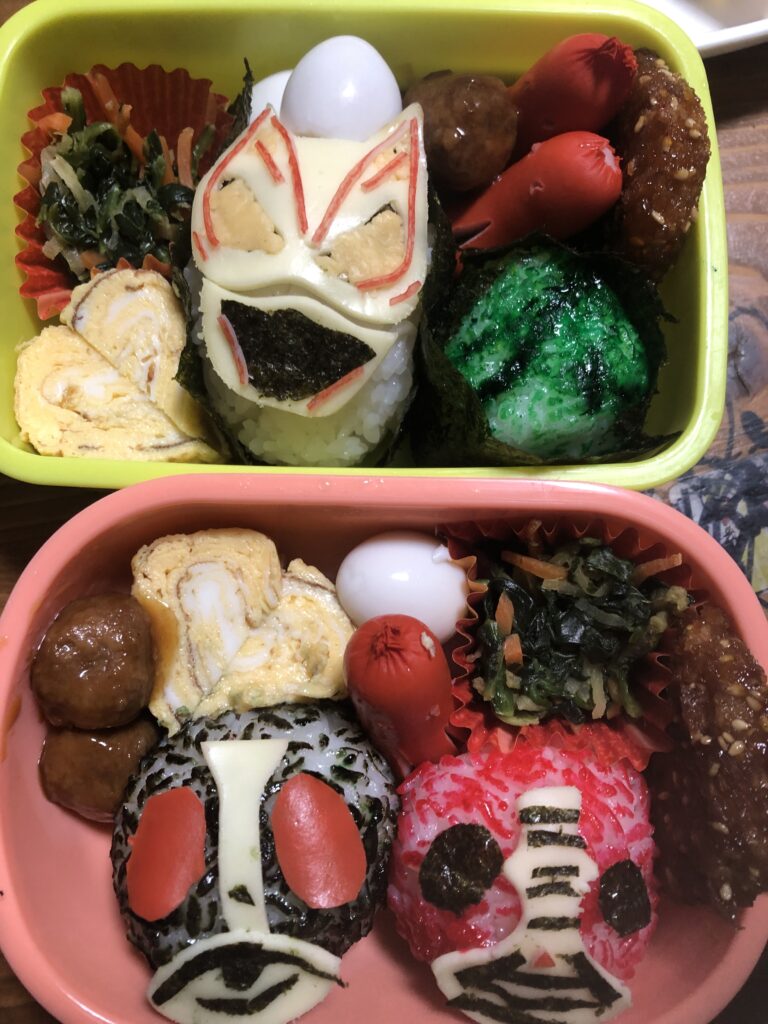 最後は子供達2人とも病児保育に行った時に作ったキャラ弁ですが、何故か熱がありまともにご飯食べれなかったのにキャラ弁リクエストきた困惑の私達でしたが、とりあえず嫁が作っていました。