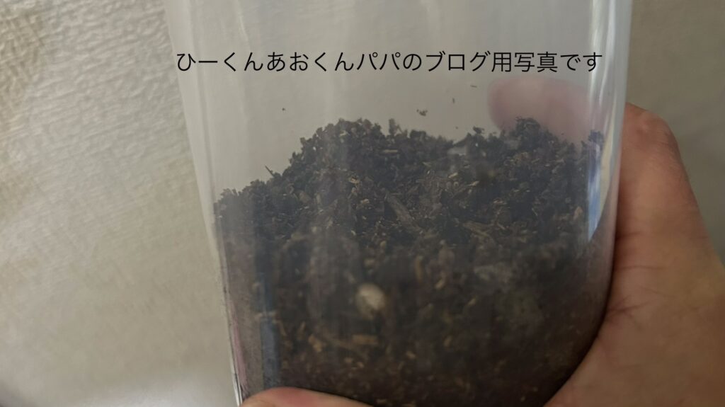3月に産卵してくれた小さな命が、今日こうして元気な幼虫として姿を見せてくれたことは、ひーくんとあおくんにとっても、パパにとっても最高のプレゼントになりました。